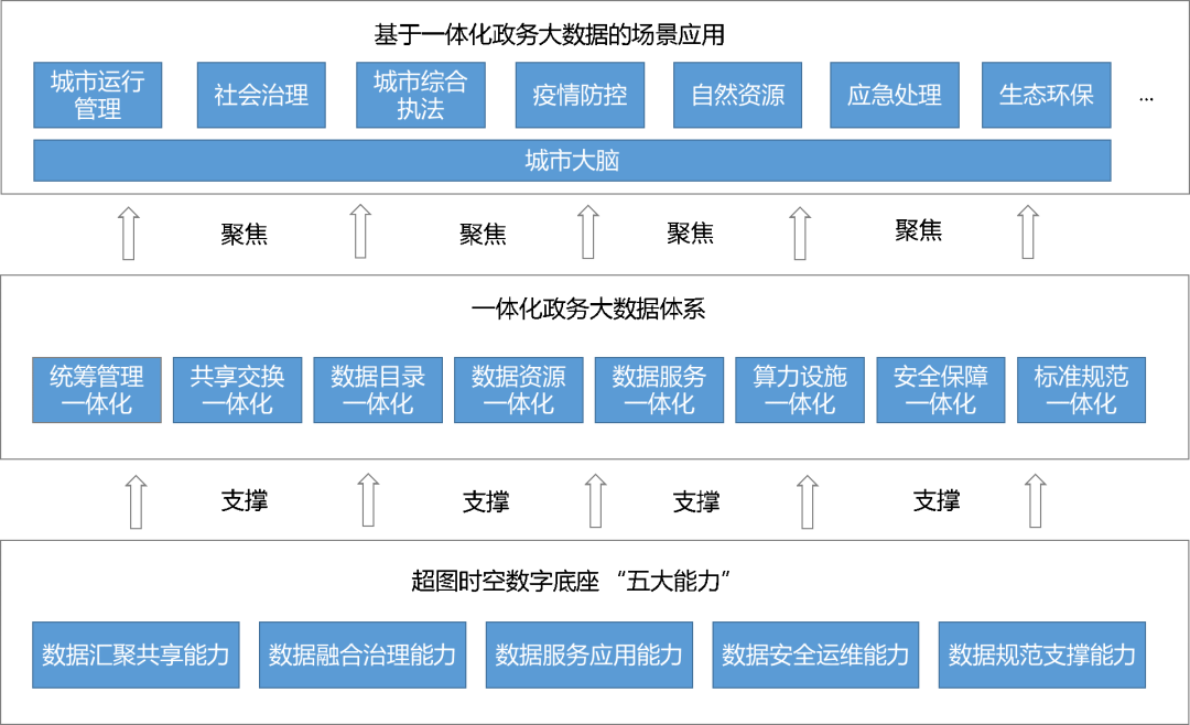 “汇聚共享+融合治理+服务应用+安全运维+标准支撑”